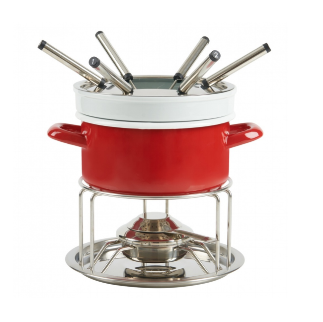 Pentola per fonduta in ghisa con smalto caldo 6 forchette per fonduta Set per fonduta di formaggio e cioccolato