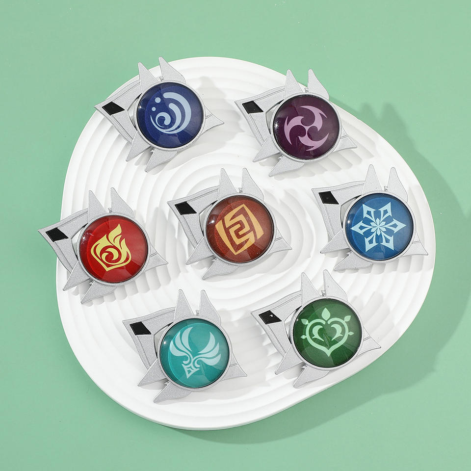 Vendita calda all'ingrosso di fabbrica 7 disegni Genshin Impact pins spille smaltate luminose Creative regalo Anime per bambini