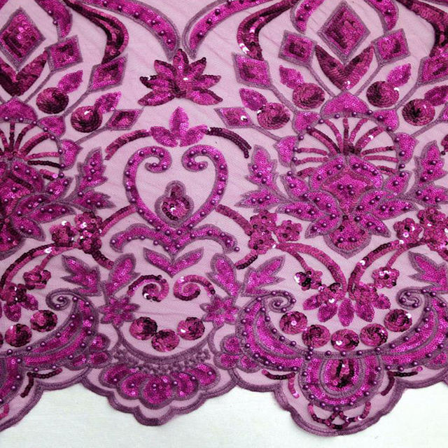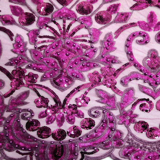 Nome del prodotto:Tessuto di pizzo in tulle con ricami di perle e paillettes