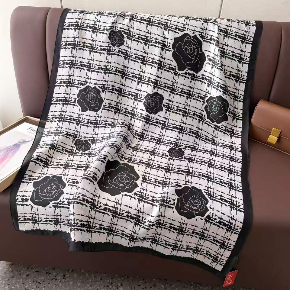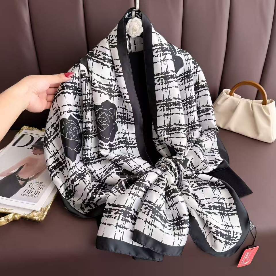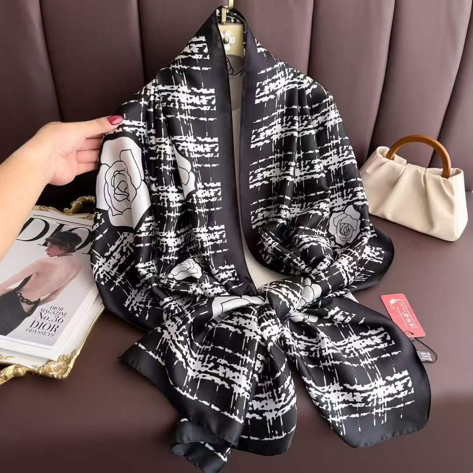 Sciarpa Lunga di Lusso in Poliestere e Seta per Donna, 180*85cm, Elegante con Stampa Floreale, Vendita Calda