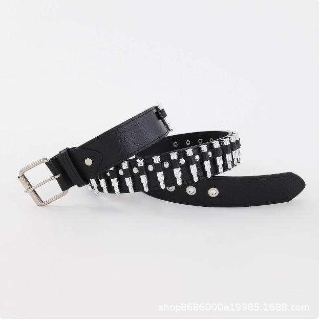 Cintura in Pelle PU Larga da Uomo Stile Punk con Borchie, Trendy Y2K, alla Moda, con Fibbia a Proiettile, Personalizzata da Donna - Vendita Calda