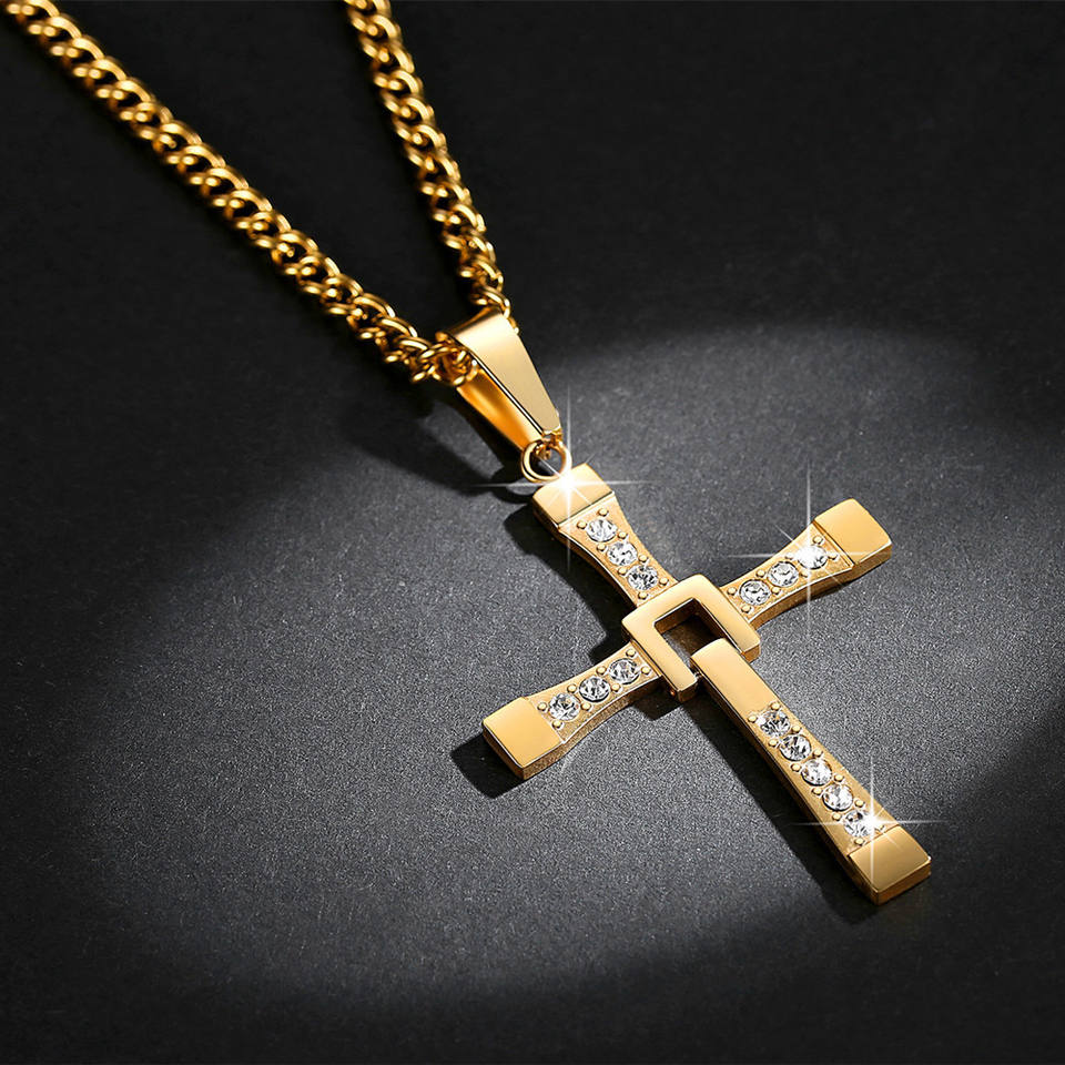 Vendita calda veloce e Furious semplice gioielli religiosi in acciaio inossidabile placcato oro Dominic Toretto gesù croce collana per gli uomini