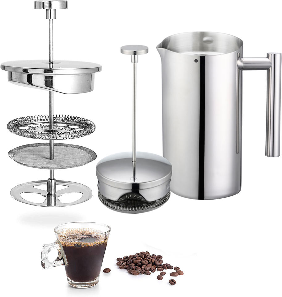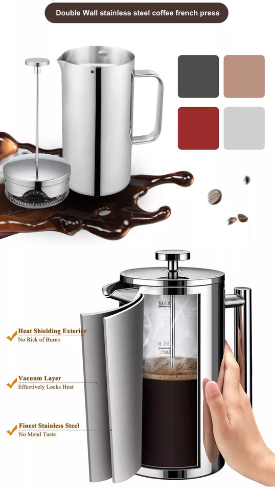 Stantuffo per caffè alimentare di vendita caldo pressa per caffè francese caffettiera a doppia parete in acciaio inossidabile French Press cafetiere