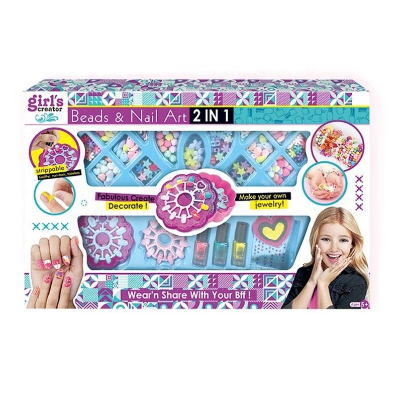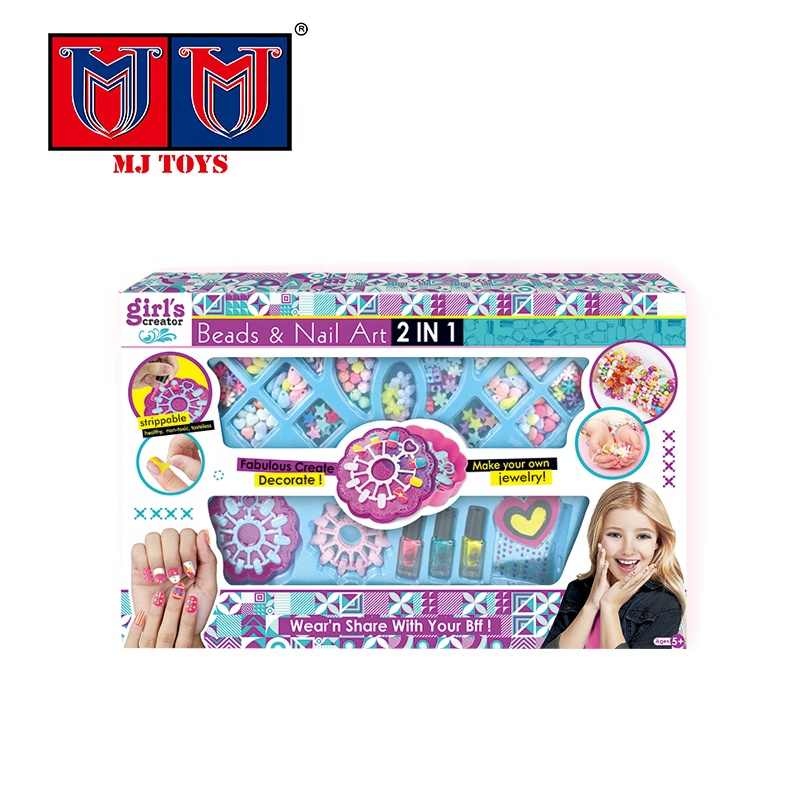 Hot Selling Girl Role Kids Pretend Play Toys for Beauty Tool Set with 2 in 1 Diy Plastic Beeads and Nails Art Toys