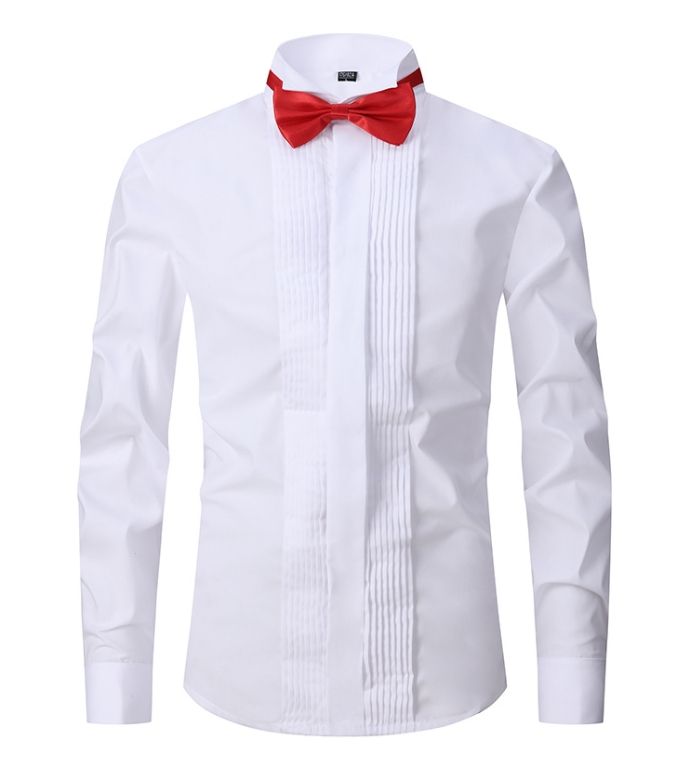 Camicia da sposo a maniche lunghe da donna camicia da gruppo Slim Fit con colletto bianco