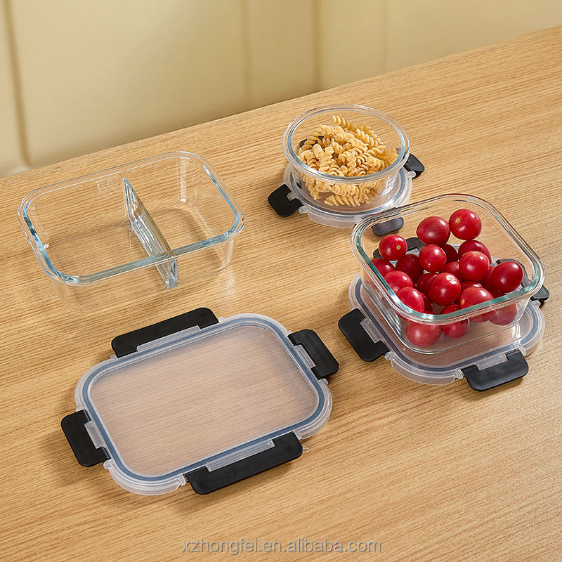 Contenitore per alimenti in vetro borosilicato riscaldabile, coperchio grigio a tenuta d'aria, MOQ 10.000 pz (in magazzino 300 pz)