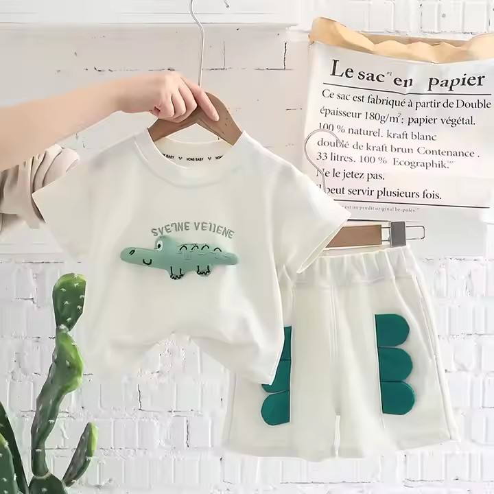 Hot-Selling High-End Casual Style Velour Patchwork 3D Short-Sleeved Clothing Sets Discounted Baby Suits for Boys and Girls