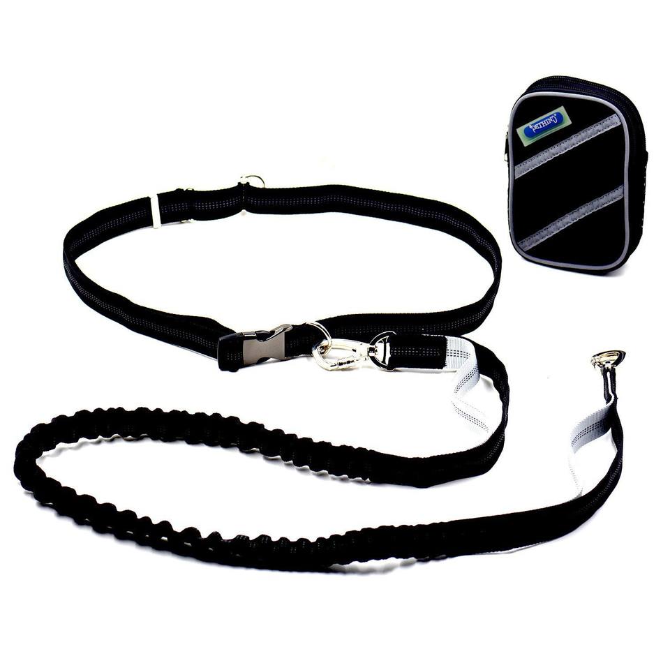 Set Guinzaglio e Collare per Cani in Nylon Hans-Free di Alta Qualità, con Borsa, Riflettente e Regolabile, Ideale per la Corsa