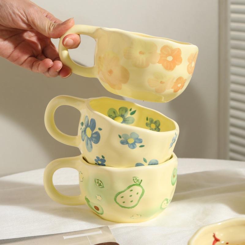 Vendita a caldo irregolare in fiore pizzicato a mano in ceramica tazze da caffè in porcellana floreale tazza da latte tazza da caffè per regalo