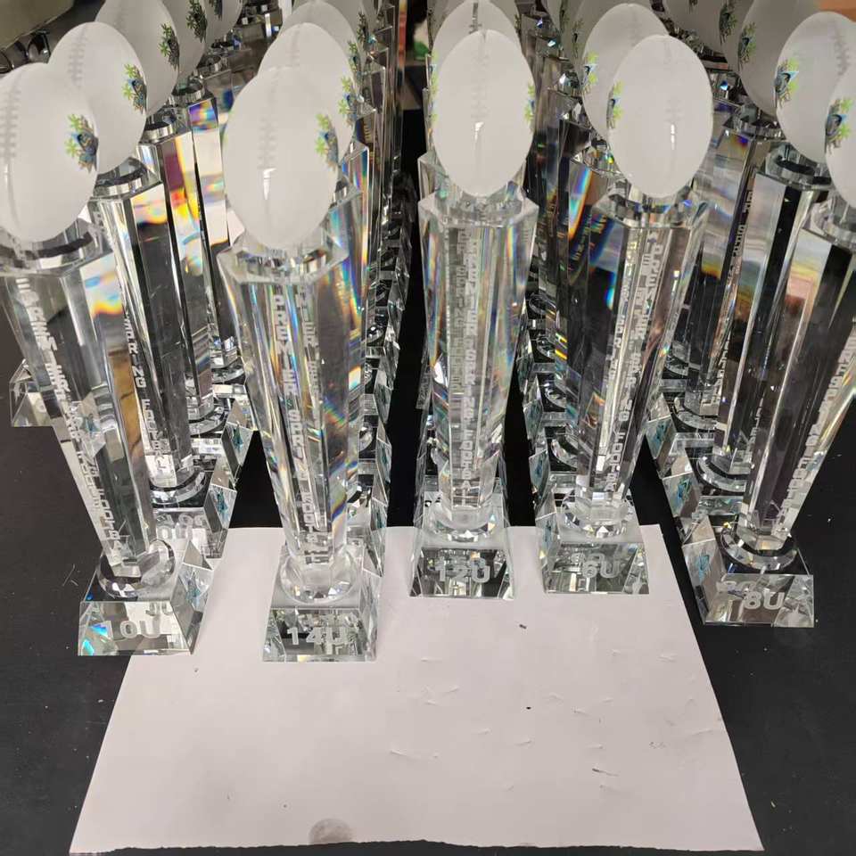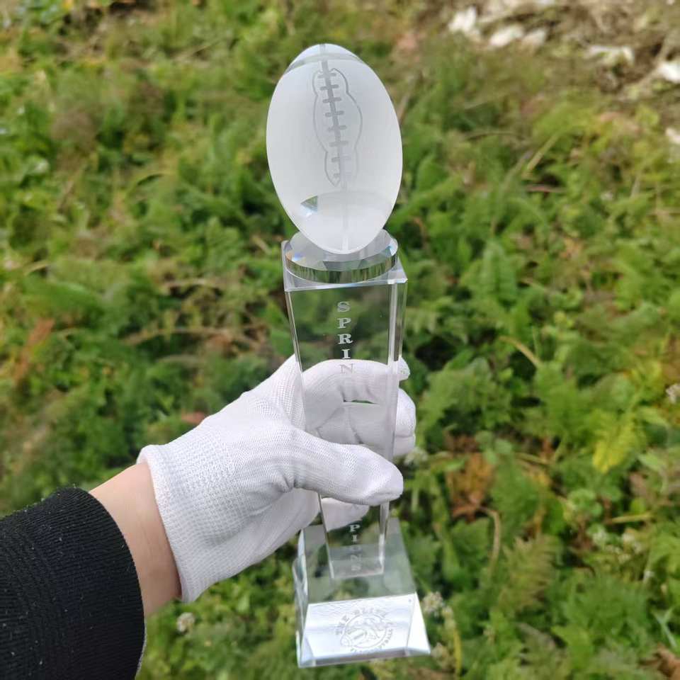 Vendita calda K9 bianco personalizzato 3D logo Laser cristallo trofeo di Rugby coppa del trofeo di Football americano premi per i campionati campione