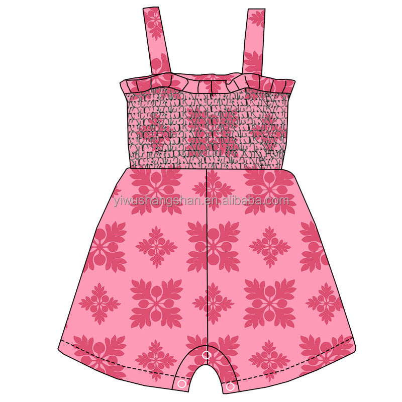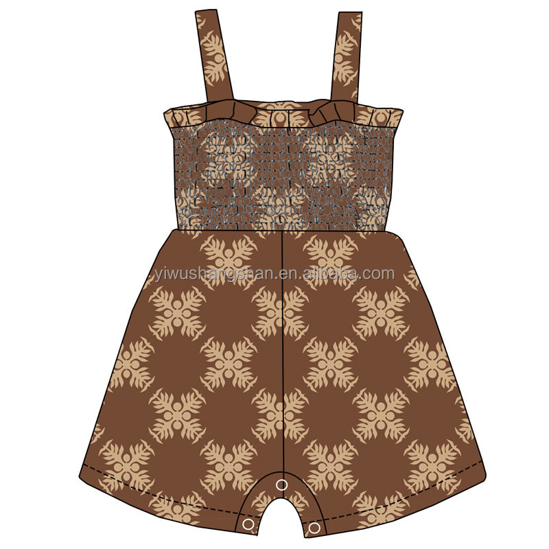 Hot Selling Kids Girls' One-piece Short Romper Sleeveless Smocked Hawaiian Floral Printed Toddlers Girls Ruffle Jumpsuits