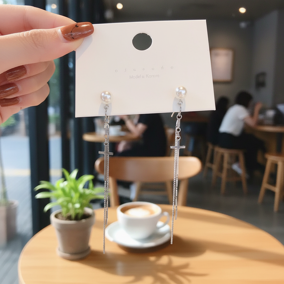 Vendita calda stile coreano minimalista croce argento moda orecchino Set per ragazze di tendenza gioielli all'ingrosso