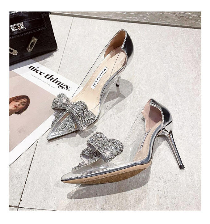Hot Selling Luxury Good Quality Bridal Wedding Women Stiletto Sexy Fashion Bow Knot Rhinestone Decoration High Heel Shoes Ladies