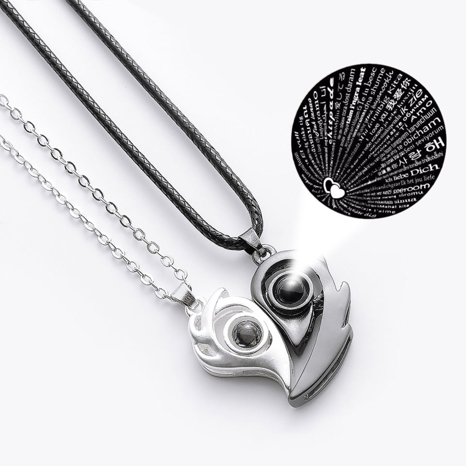 Hot Selling Magnetic Couple Necklace Heart Splicing Projection 100 Language I Love You Necklace for Women Men