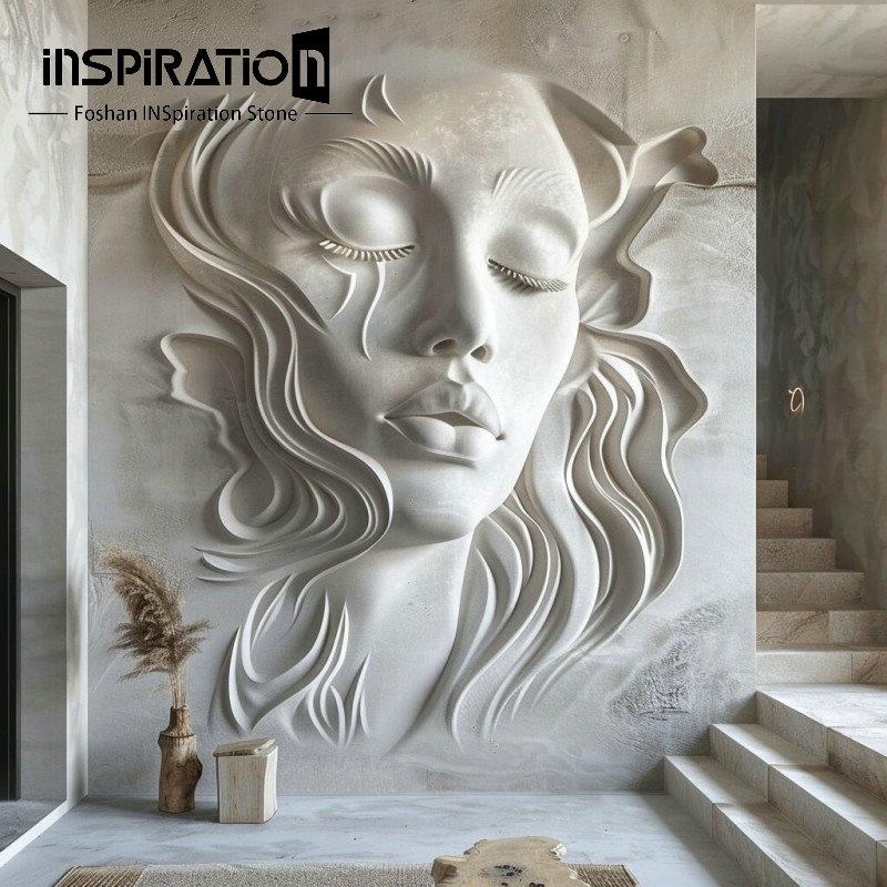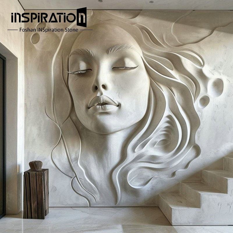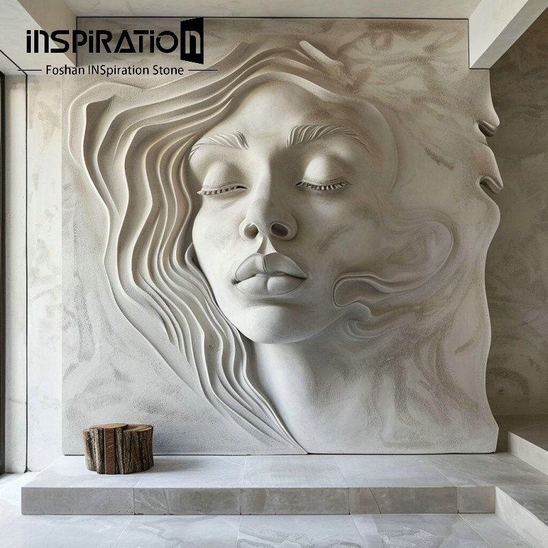Pannelli 3D GRG/GFRG/GRC/FRP, spess. 12–15 mm, ignifugo e fonoisolante, per pareti interne (lobby/hotel), imballo casse legno