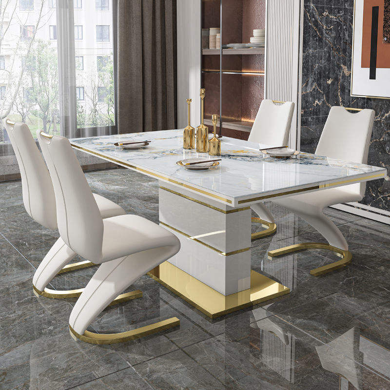 Tavolo da Pranzo Quadrato Bianco in Pietra Sinterizzata di Lusso Moderno per Sala da Pranzo e Cucina