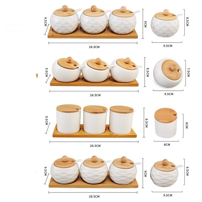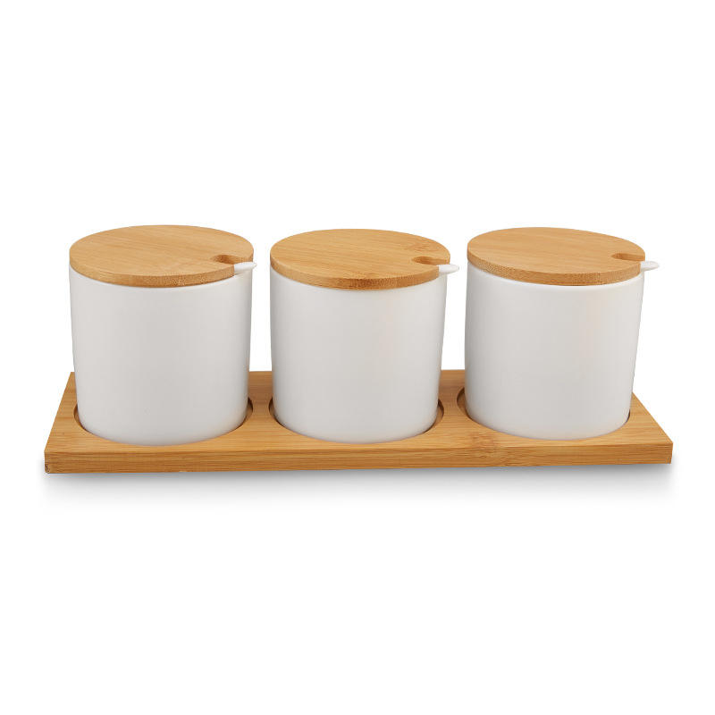Hot Selling Natural Bamboo Clay Jar Spice Condiment Pot With Bamboo Holamehome Cover Tray Porcelain Seasoning Pot for Household