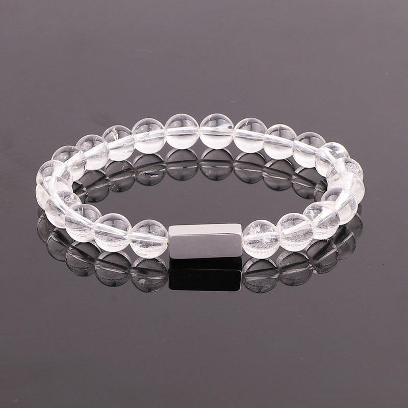 Vendita calda nuovo braccialetto in acciaio inossidabile testo personalizzato pietra naturale quarzo rosa ametista braccialetto elasticizzato donna JBS10857