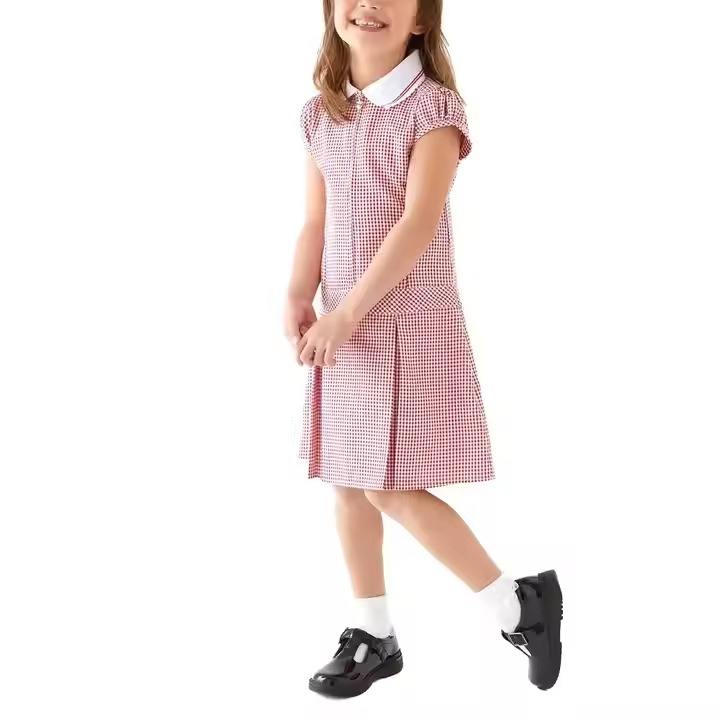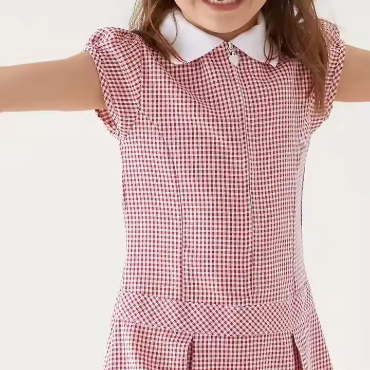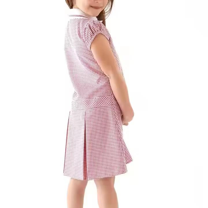 Vendita calda di nuove gonne a quadri rosse estive progettate su misura per le uniformi della scuola primaria