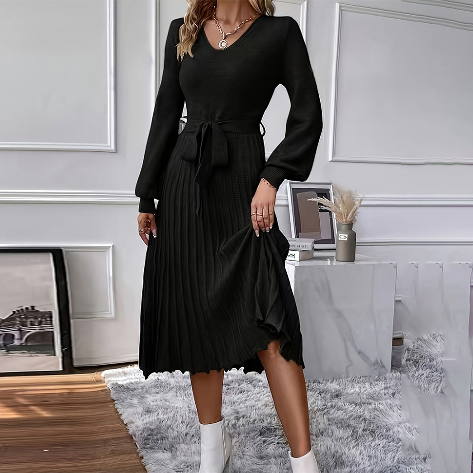 Nuovo abito Casual a vita alta a maniche lunghe con ampia fornitura di ODM per abiti da donna in lana autunnale