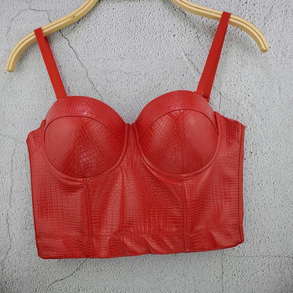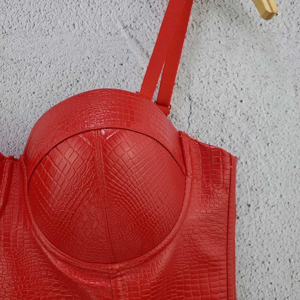 Hot Selling PU crocodile Print Top Female Sense of Plaid Thin Undershirt Chest Pad Halter Bra Underbust Women Strapless Corset