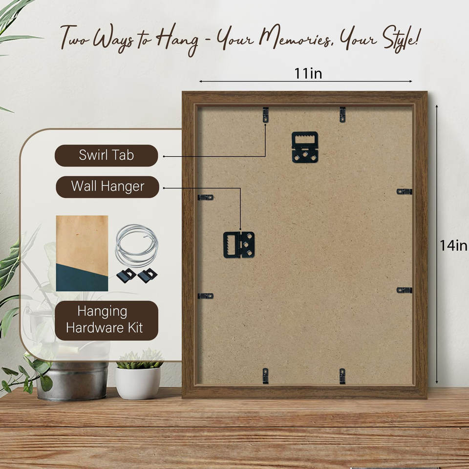 Cornice Portafoto in Legno Marrone Effetto Venatura, Cornice per Foto in Legno, Cornice da Parete in Legno con Vetro Temperato HD, Set di Cornici per Galleria Fotografica - Vendita Calda