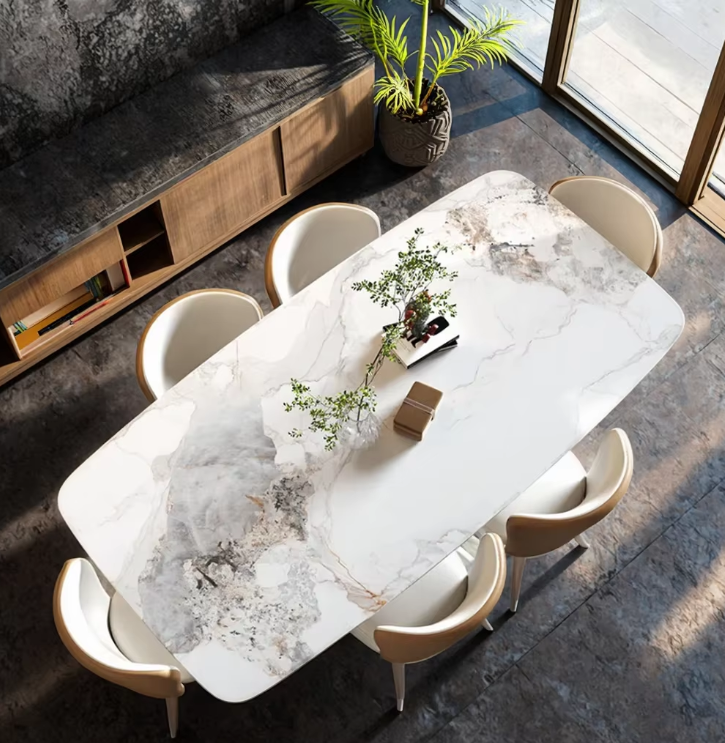 Tavolo da Pranzo di Qualità Più Venduto da 6/8 Posti Tavoli da Pranzo di Lusso in Marmo con Acciaio al Carbonio per Cucina e Soggiorno