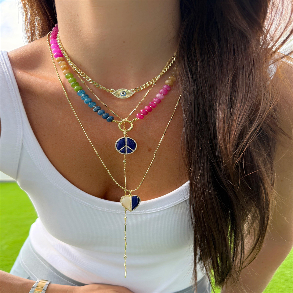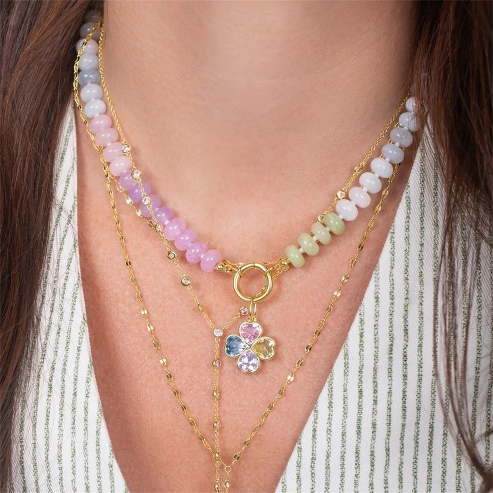 Vendita calda arcobaleno gemma collana di perline 4mm 8mm caramella pietra naturale con ciondoli oro collana di stratificazione in acciaio inox