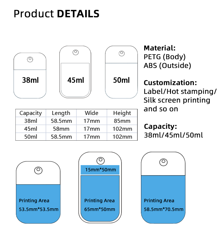 Flacone Spray Tascabile a Forma di Carta di Credito in Plastica Vuoto e Ricaricabile per Profumo, Disinfettante Mani o Detergente Liquido