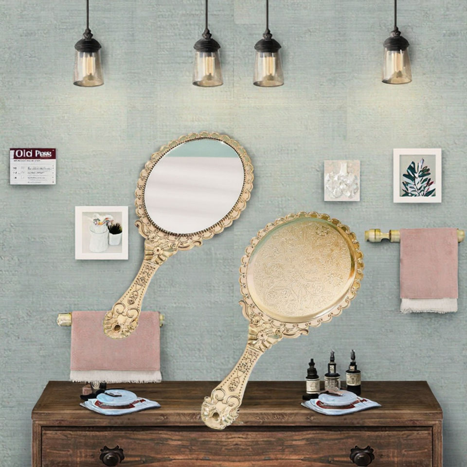 Hot Selling Retro Vintage Gold Oval Handheld Compact Mirror Small Silver Embossed Single Portable Princess Makeup Mirror