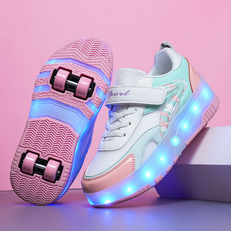 Scarpe Sportive per Bambini con Rotelle Deformabili, Pattini a Rotelle LED Rosa con 4 Ruote, Suola in PU Leggera per Ragazzi e Ragazze