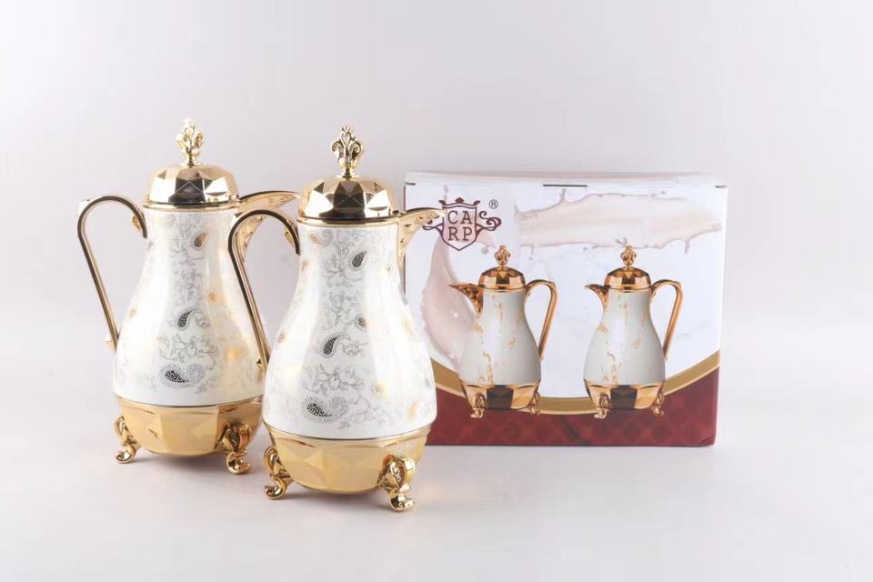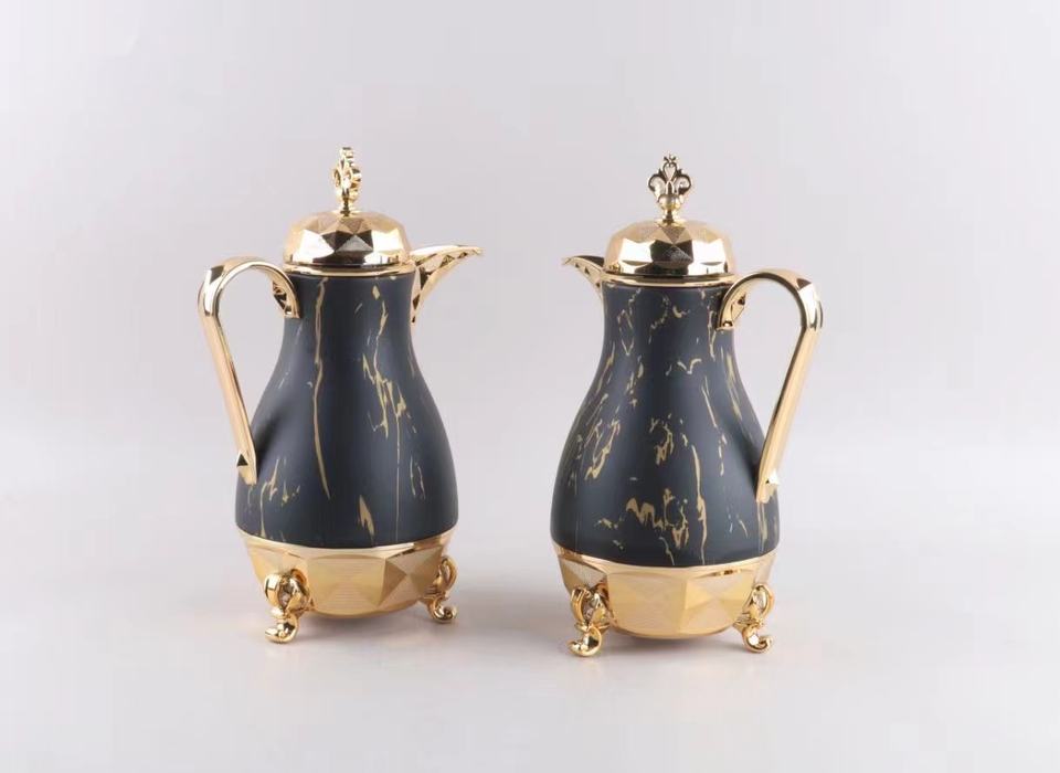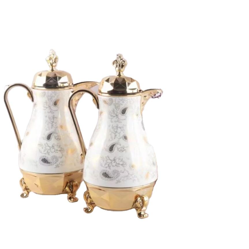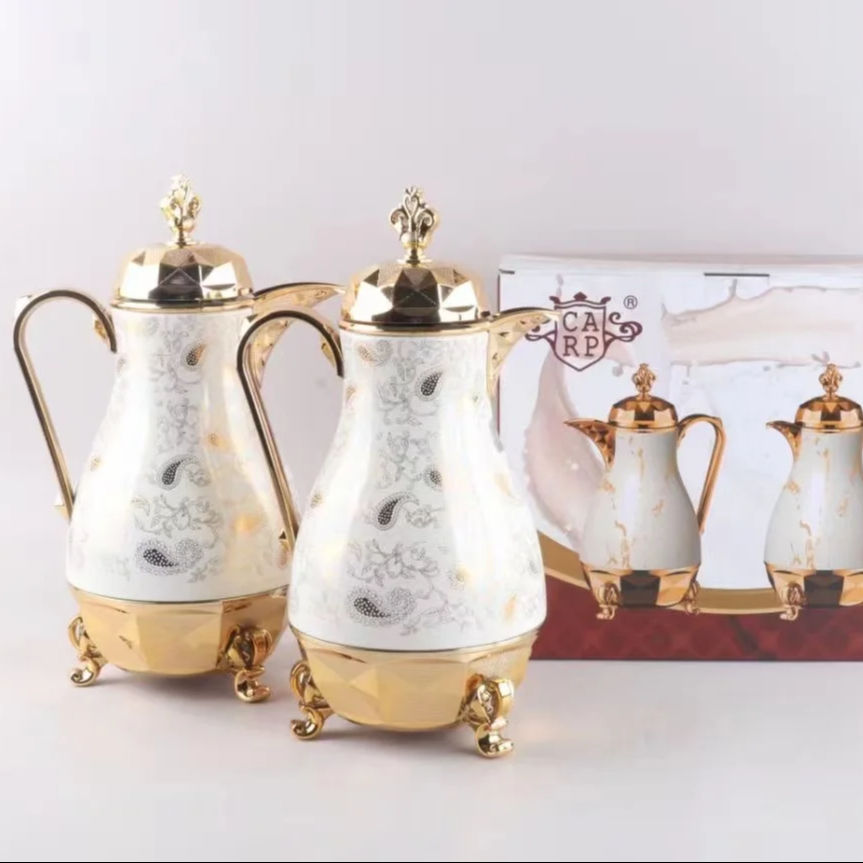 Thermos di Lusso Stile Arabo 1000ML+700ML, Utensile Domestico Reale, Dallah per Caffè Arabo e Thermos per Tè in Pelle