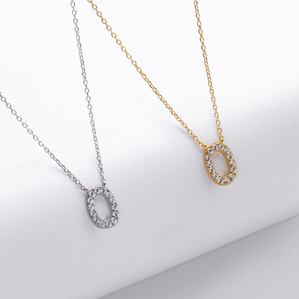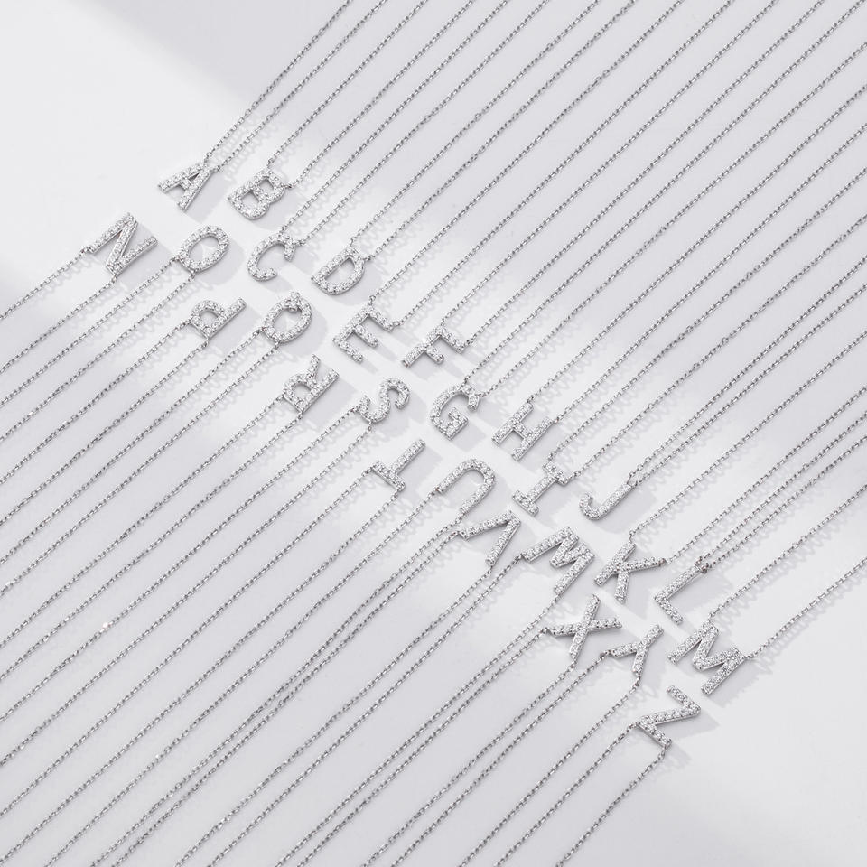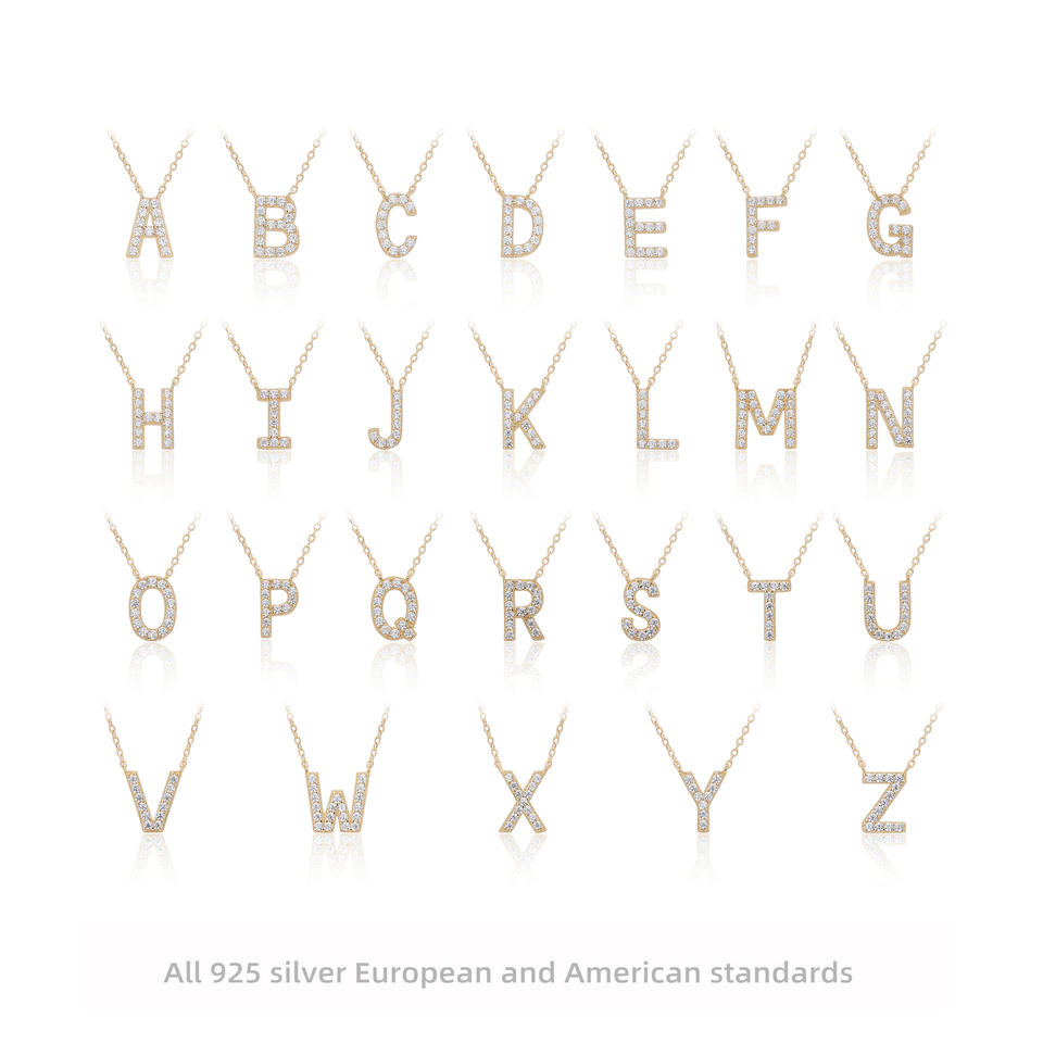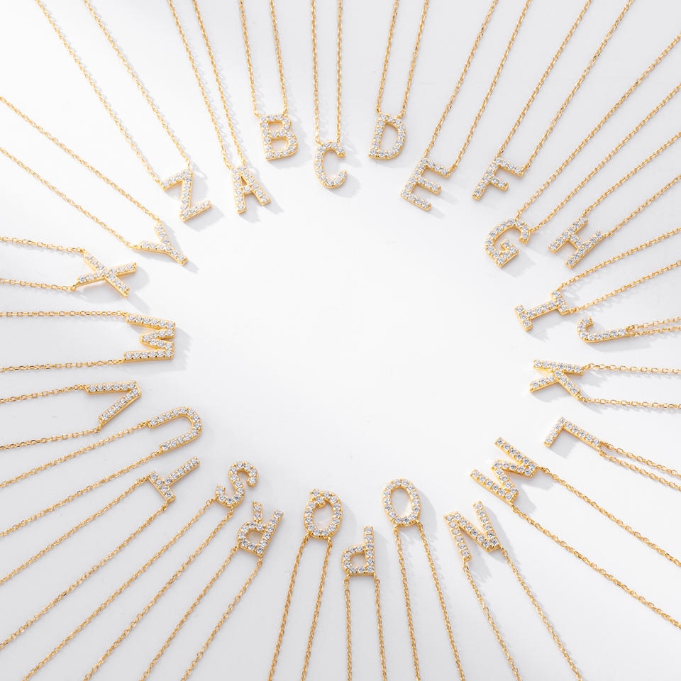 Collana con Ciondolo a Forma di Lettera in Argento Sterling 925 Placcato Oro con Zirconi, Regalo per Donna