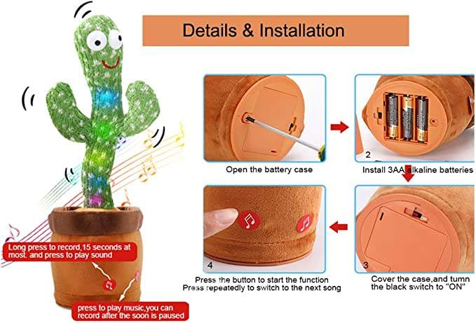 Giocattolo Cactus Parlante e Danzante in Peluche Morbido, Bestseller per Bambini