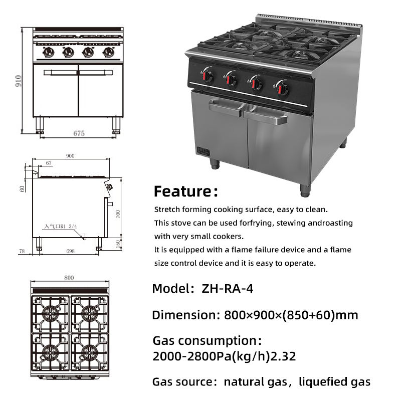 Nome del prodotto:Gamma a GAS 4 bruciatori con armadio