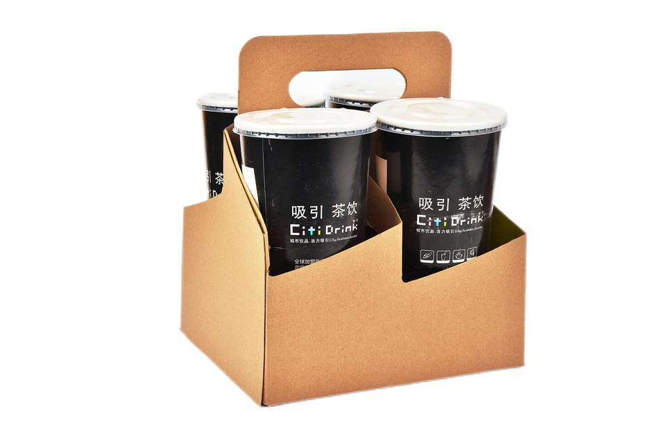 La vendita calda porta via la scatola di carta marrone per 2 o 4 tazze con manico a farfalla per caffè caldo