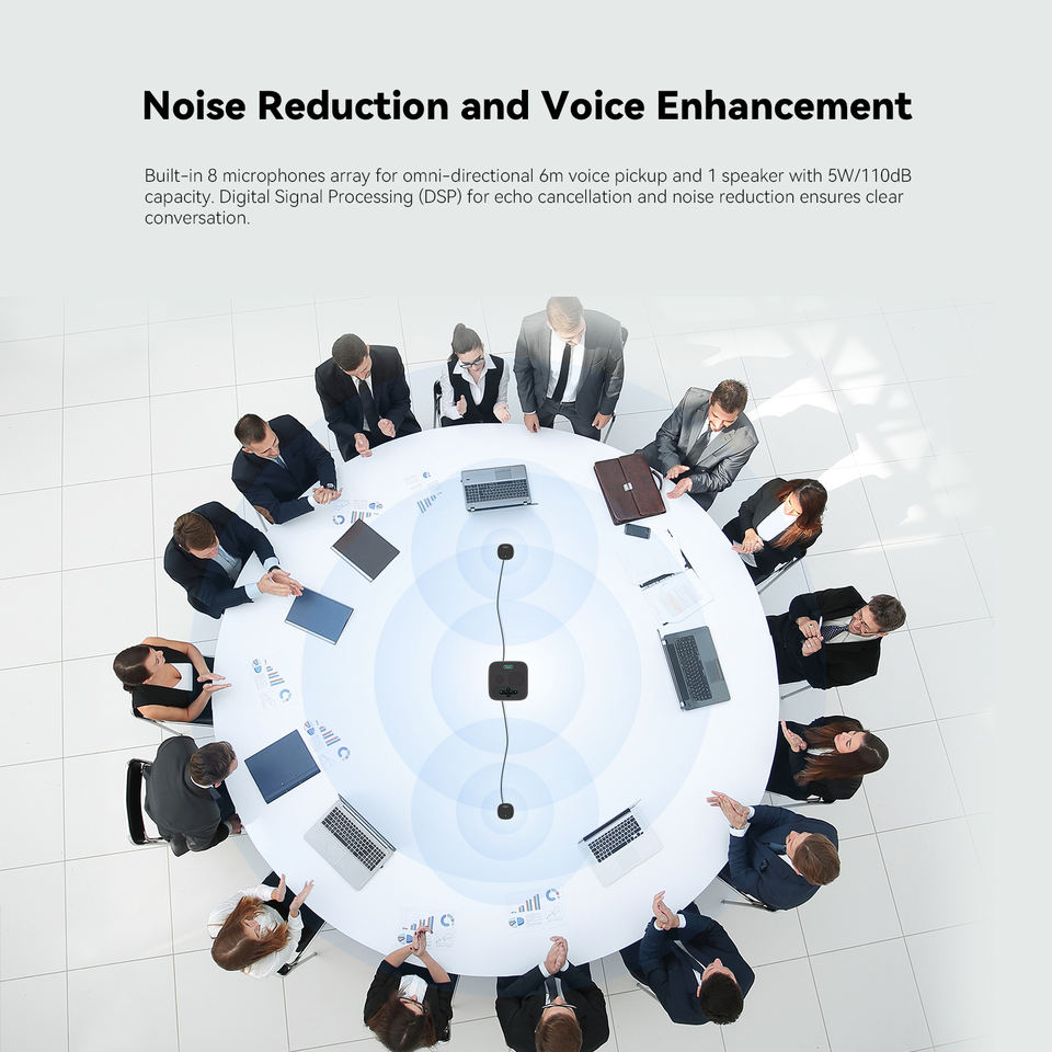 Altoparlante per Conferenze Wireless Tenveo M6BEX, BT 5.0 USB con 8 Microfoni Integrati, Sistema Audio per Conferenze