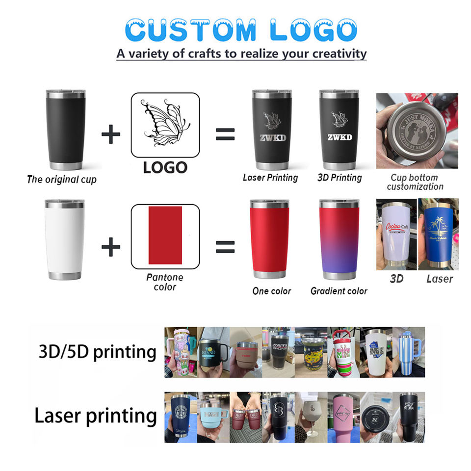 Tazza da Viaggio Isolata Sottovuoto 20oz, Bicchieri Termici in Acciaio Inox, Tazza Termica 30 Once, Tumbler Originale con Logo Personalizzato