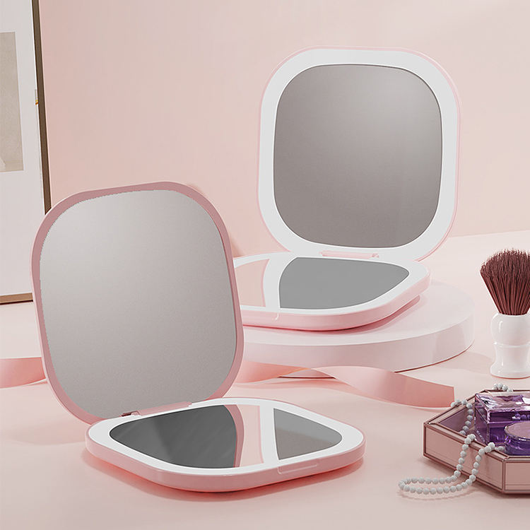 Specchio portatile portatile per il trucco portatile di vendita calda della fabbrica all'ingrosso compatto specchio per ingrandimento della luce della tasca specchio cosmetico