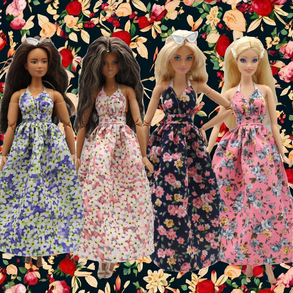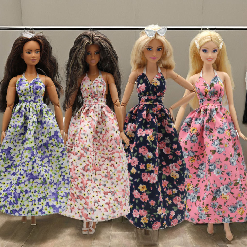 Hot Selling Wholesale Mini Toy for Barbie Size 30cm Doll Clothing Accessories Woven Straps Hanging Neck Backless Floral Dresses