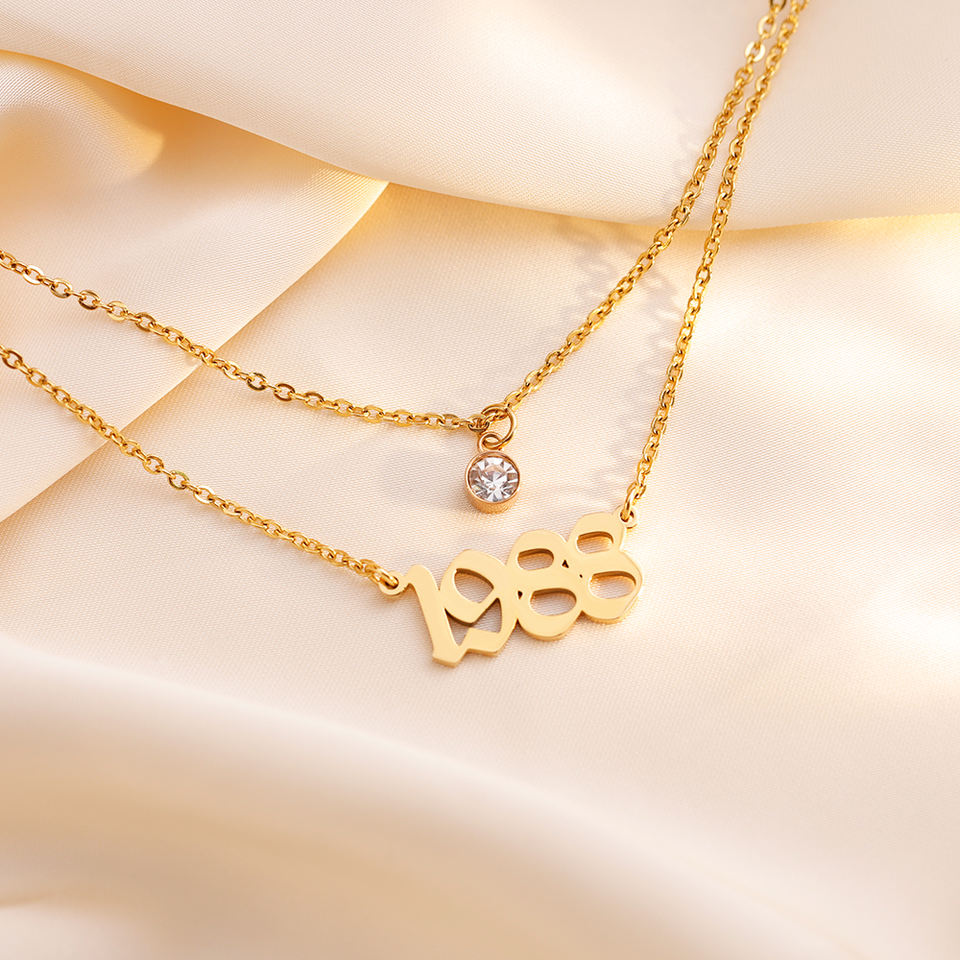 Hot Selling Women Girls Gift 1988 Anniversary Birth Year Necklace 18K Gold Plated With Birthstone