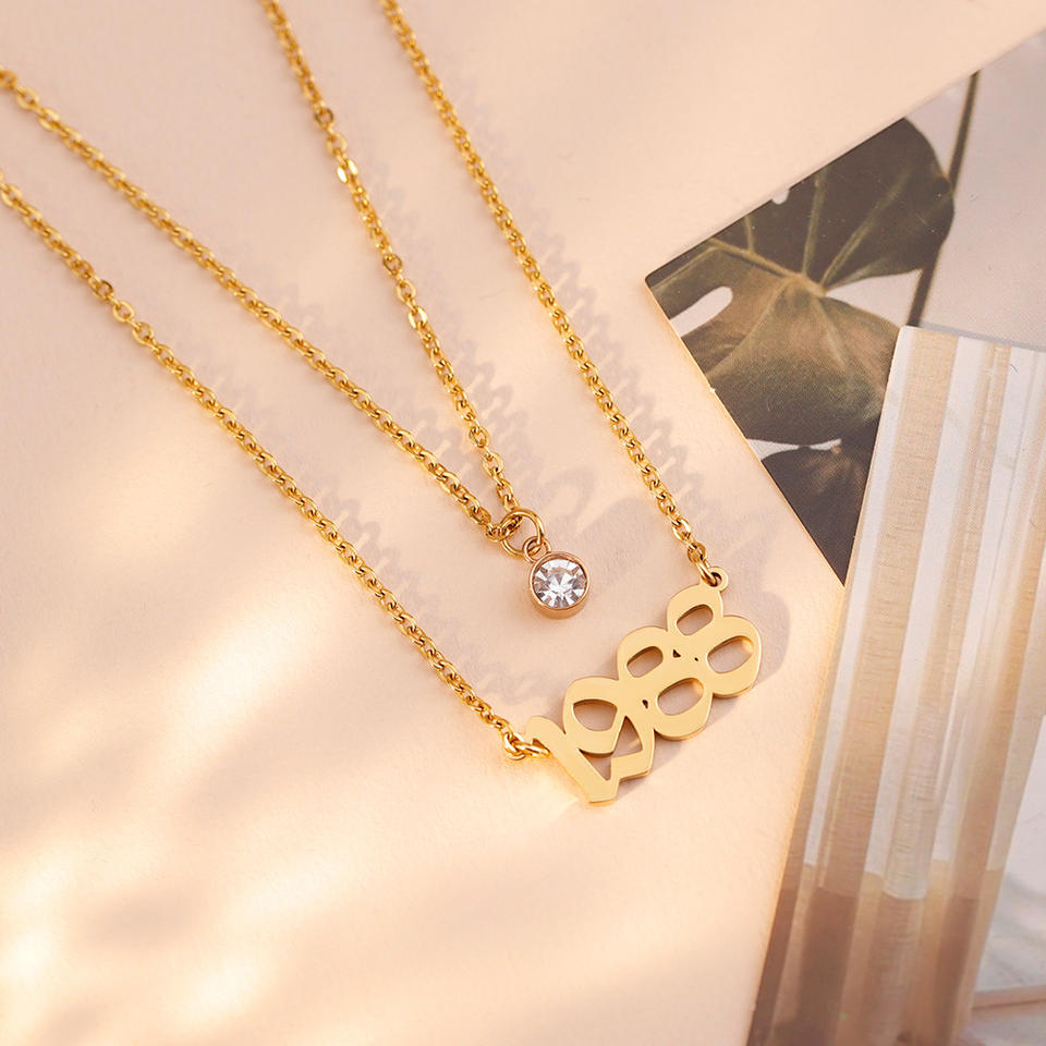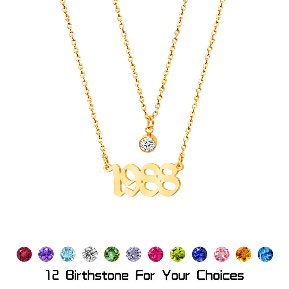 Hot Selling Women Girls Gift 1988 Anniversary Birth Year Necklace 18K Gold Plated With Birthstone