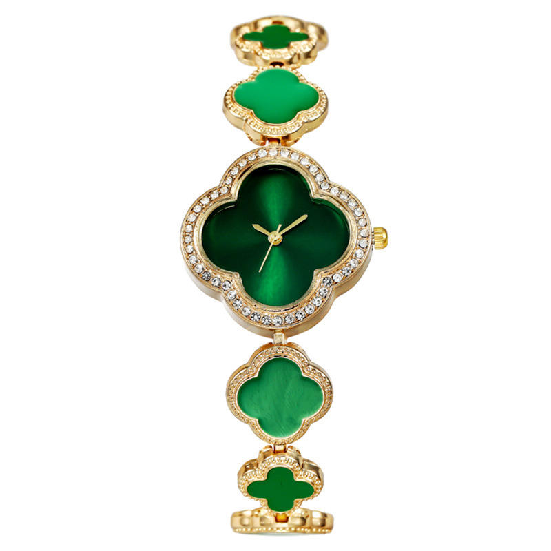 Hot Selling Women's Quartz Watch, Emerald Green Clover Bracelet Watch, Light Luxury Retro Fashion Watch