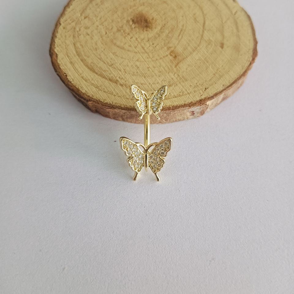 Hot Selling Women's Trendy Stainless Steel Sexy Navel Piercing Colorful Butterfly Zircon Belly Body Piercing Jewelry