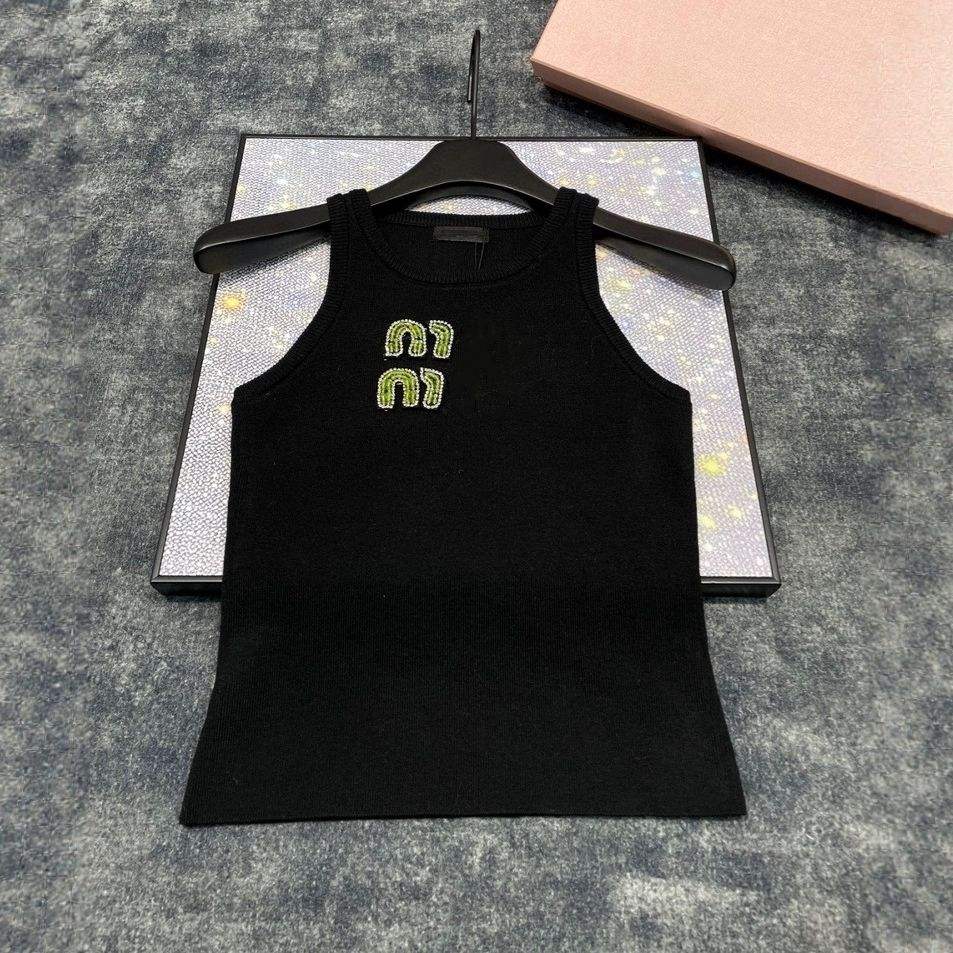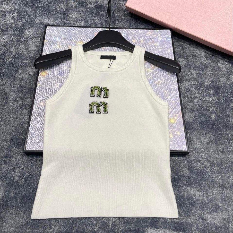 Top Canotta Donna a Costine Senza Maniche con Ricamo Lettere in Strass, Ideale per Vacanze Estive Casual - Articolo Caldo del Momento