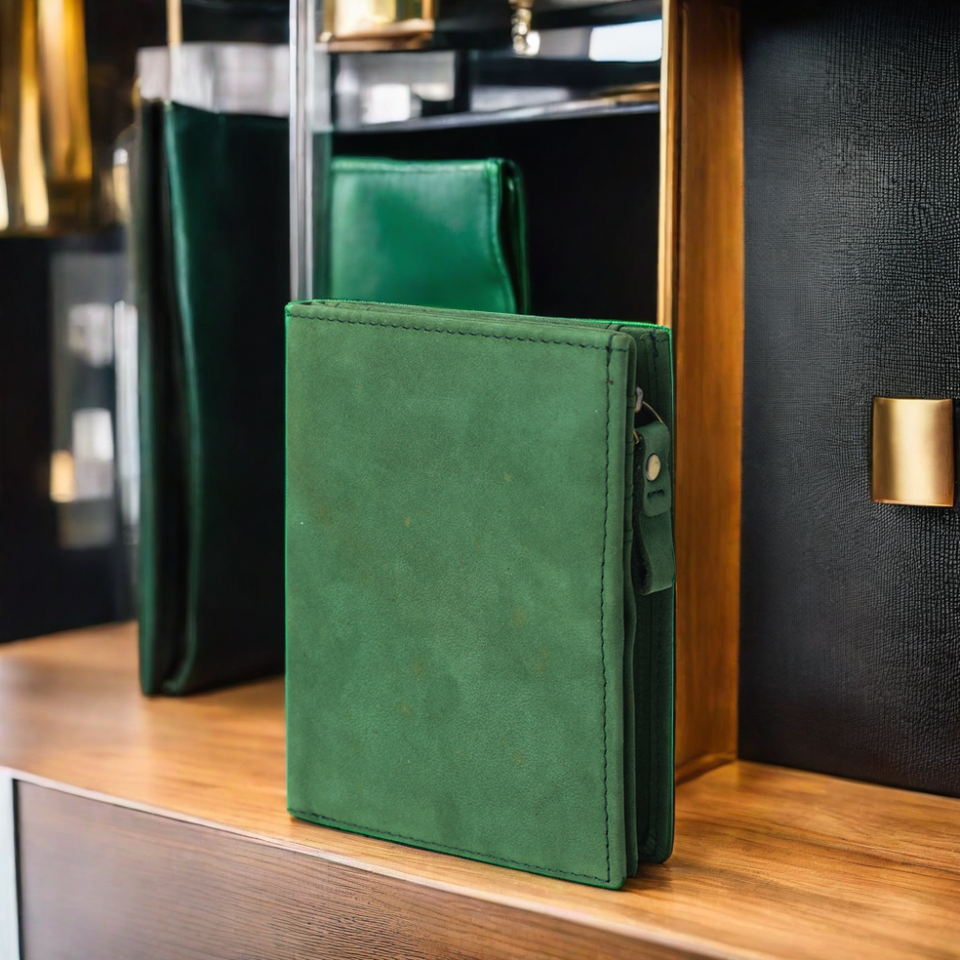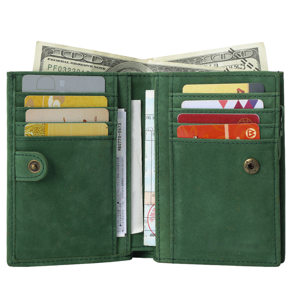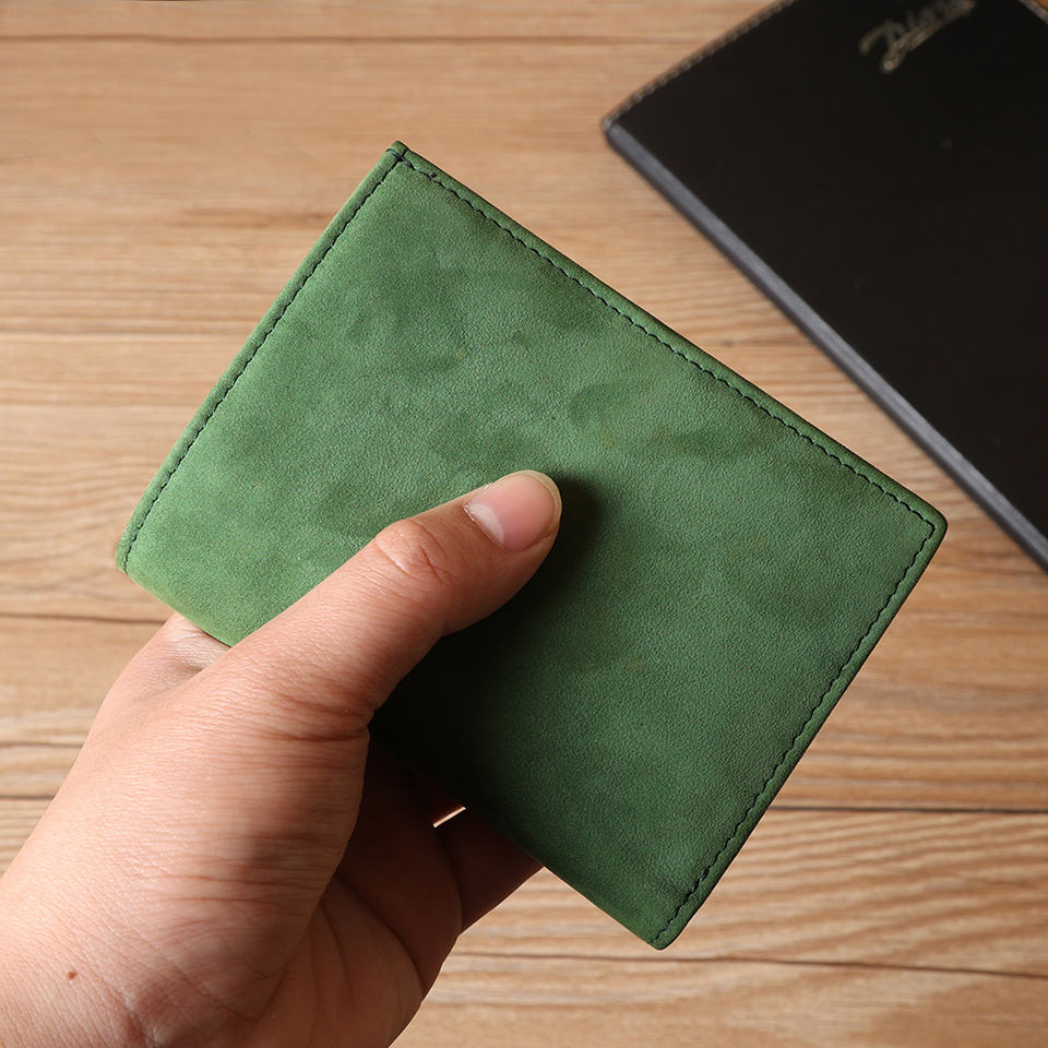 Hot Selling in Stock Green Cowhide Real Leather Card Wallet RFID Blocking Men Genuine Cow Leather Wallet for Men