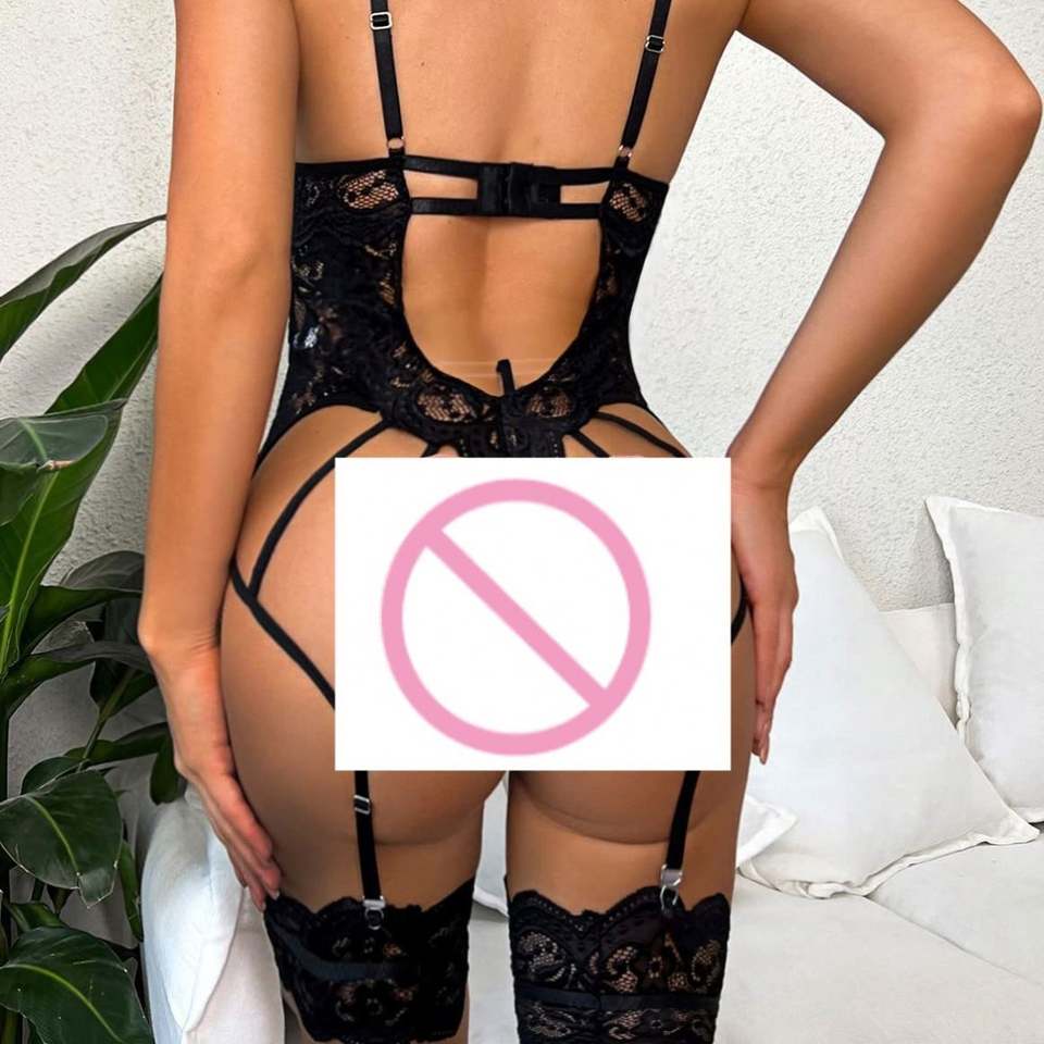 Hot Sexy Women's Lacy Bodysuit Crotchless Tights Lingerie Full Bodystockings for Nightclubs Erotic Mesh Clothes for Sexy