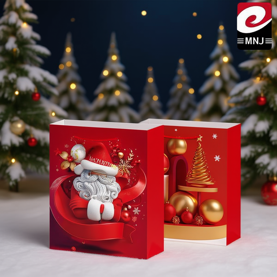 Sacchetto Regalo in Plastica 26*32*10 con Stampa a Caldo in Oro per Natale e Festività Natalizie