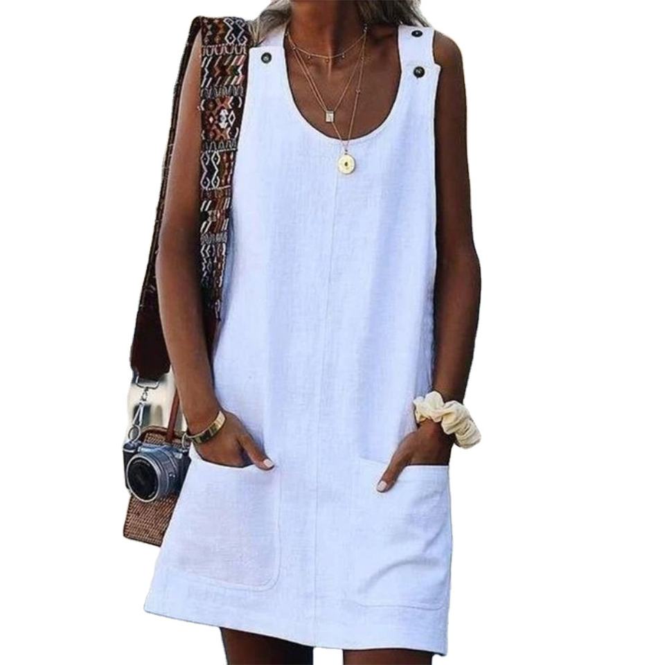 Hot Summer Women's Loose Sleeveless Dress Cotton Linen Suspender Pocket Dress