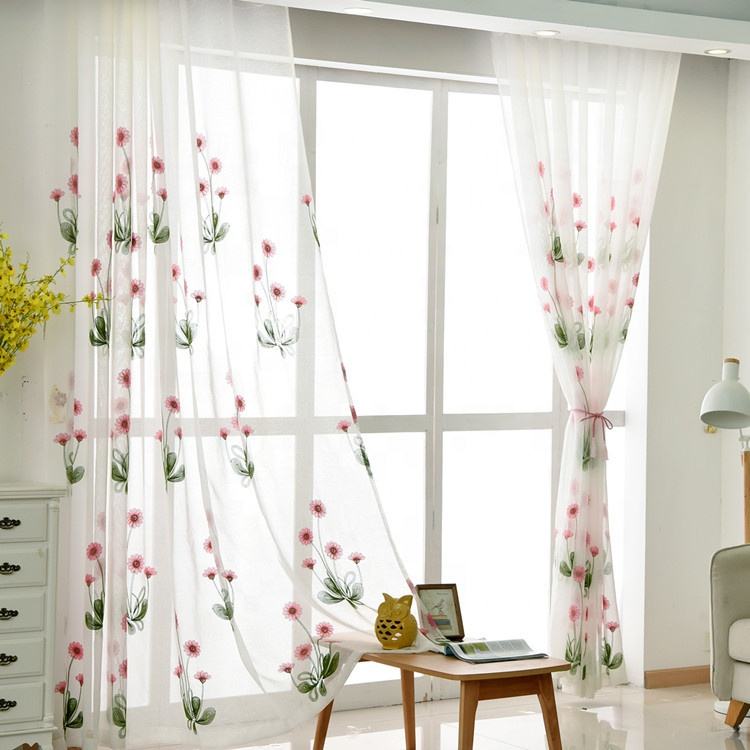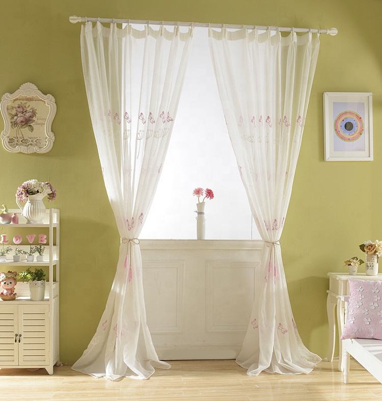 Fornitore caldo tulle di poliestere all'ingrosso ricamo floreale personalizzato bianco rosa farfalla tende trasparenti per il soggiorno